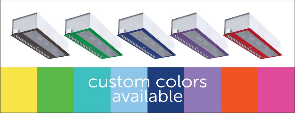 The Berner Architectural Recessed 16 Air Curtain mounts flush with the ceiling with a white aluminum exterior. Chosen by designers who are concerned with both aesthetics and protecting the intent of the space when the door is open.